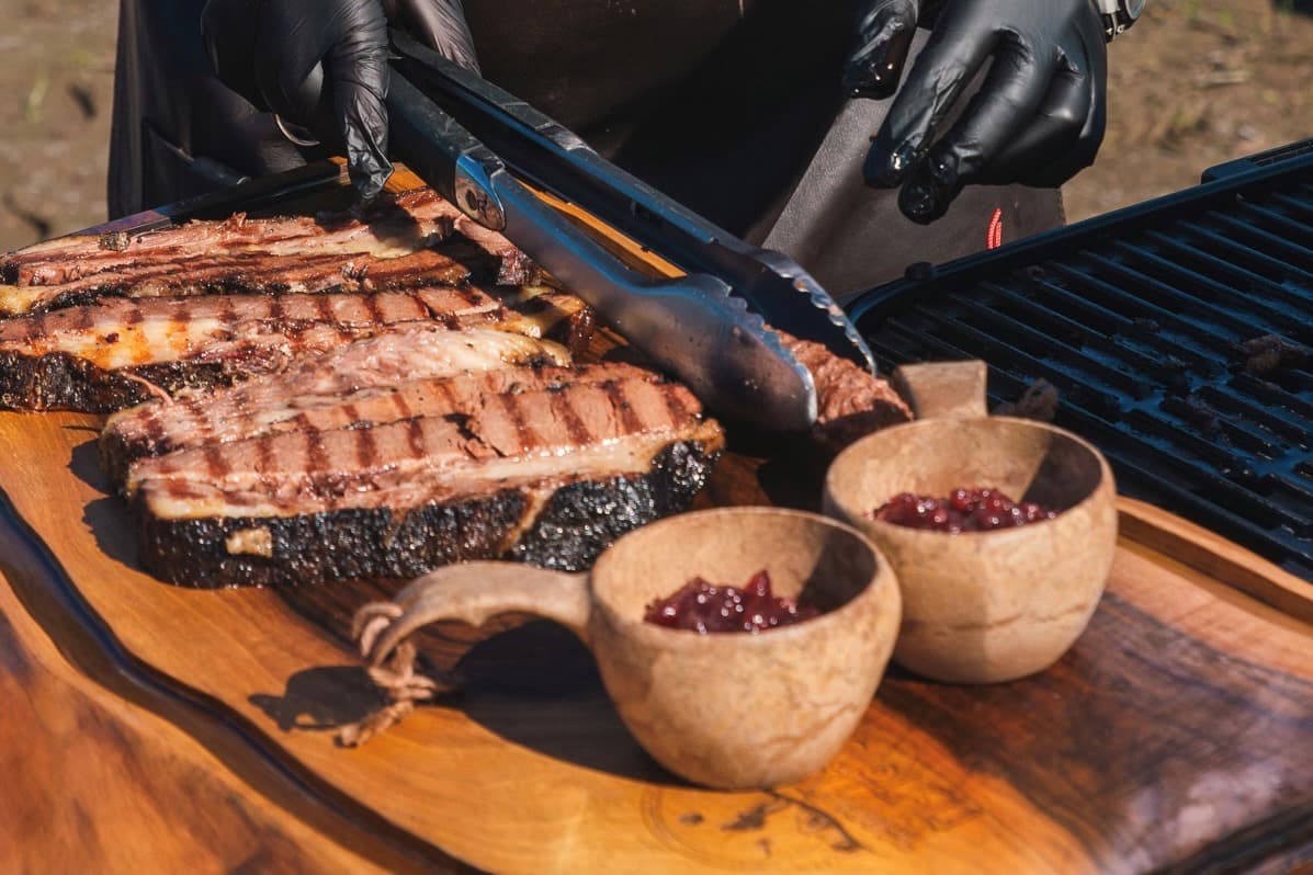 В этом фантастическом месте мы организуем для вас гриль-пикник с изысканными блюдами. Пока гид будет проводить для вас экскурсию, команда сопровождения установит мобильный глэмпинг для вашего отдыха, а шеф-повар приготовит для вас локальные специалитеты – северную рыбу и оленину на гриле, сочный брискет и даже вегетарианские блюда, если пожелаете. Вина, подобранные сомелье, подчеркнут вкусы северных деликатесов, а диджей будет создавать настроение эксклюзивной частной вечеринки на вершине плато Путорана.