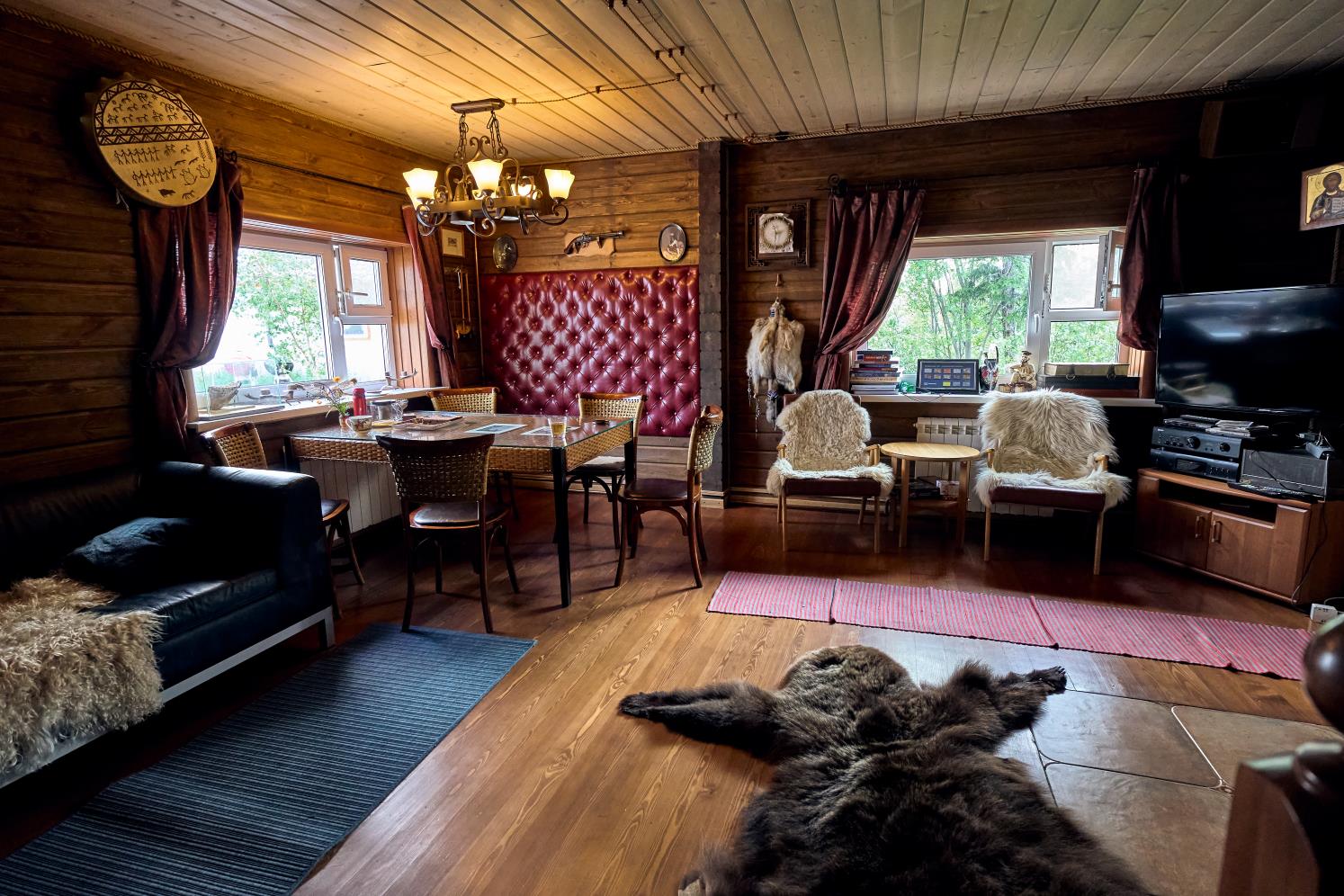 За большим столом гости могут собраться все вместе. В гастрономической программе — локальные специалитеты из оленины и северной рыбы и авторские блюда от шеф-повара.