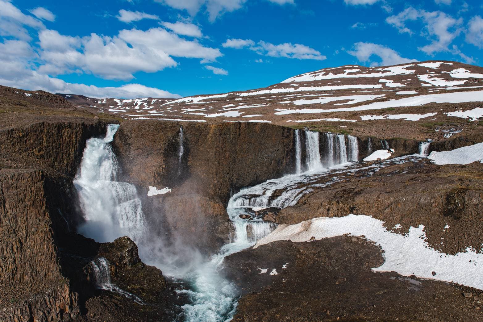 В конце июня — активное таяние снега, вы увидите грандиозные водопады во всей их полноводной мощи и красоте. В июле и августе — самая комфортная погода для путешествия: тундра пестрит яркими цветами, с вертолета можно заглянуть вглубь каньонов и любоваться радугой в брызгах водопадов.